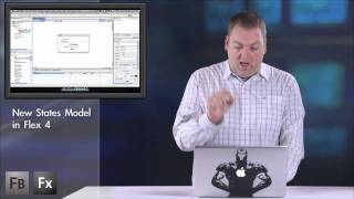 Serge Jespers builds a Flex 4 application with Flash Builder 4, highlighting the ability to customize components such as the states panel and tags, log-in screen and button, and click events.