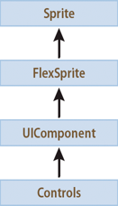 Controls are ActionScript objects derived from the flash.display.Sprite, mx.core.FlexSprite, and mx.core.UIComponent classes, as the following diagram shows. Controls inherit the properties, methods, events, styles, skin parts, skin states, and effects of these superclasses: