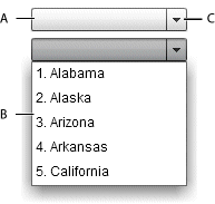 When you select an item in the drop-don list, the item appears in the prompt area of the control. The ComboBox.selectedIndex property contains the index of the selected item in the data provider of the control. The ComboBox.selectedItem property contains the selected data item.